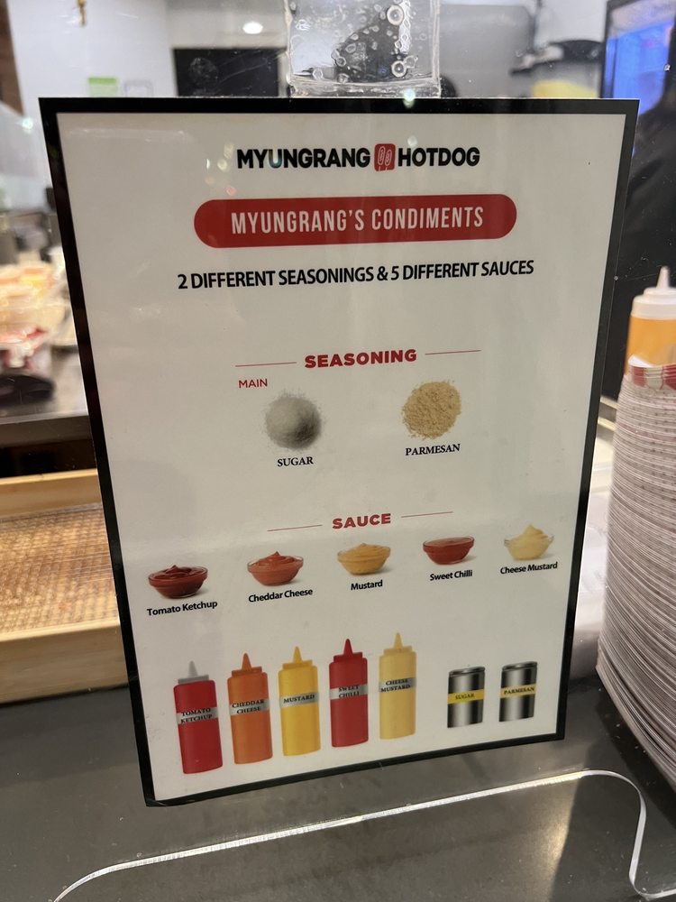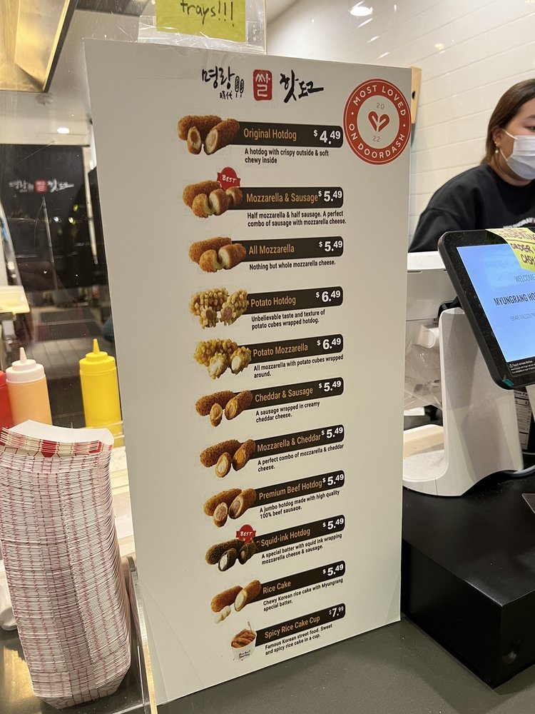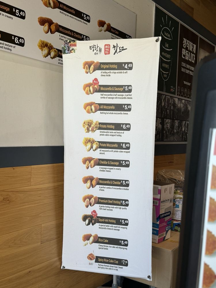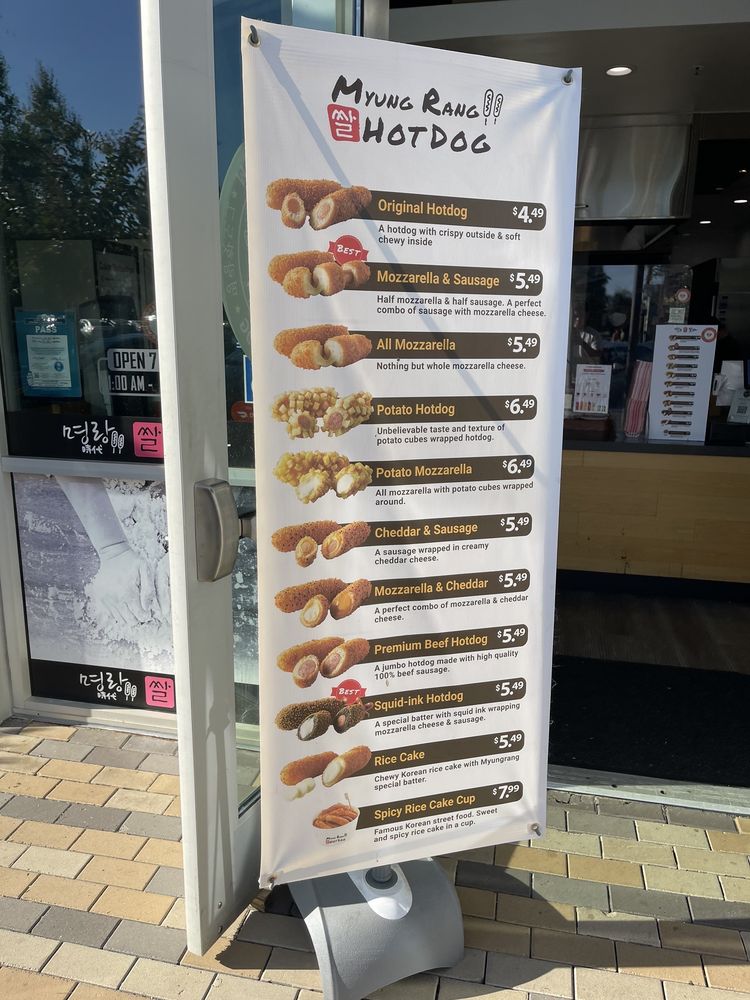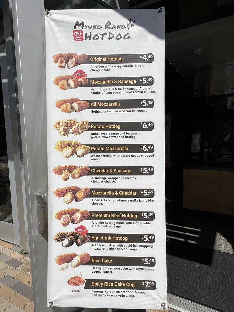 Myungrang Hot Dog in Cupertino offers a unique Korean twist on classic hot dogs. This casual and trendy spot is perfect for lunch or grabbing a quick snack. The menu features a variety of hot dog options such as Cheddar & Sausage, Potato Mozzarella, Mozzarella & Cheddar, and Squid Ink Hot Dog. Customers rave about the crispy outer layer and flavorful fillings. The hot dogs are customizable with different toppings like hot Cheetos, spicy mayo, and flaming hot Cheeto. The combination of sugar in the batter adds a unique touch to the hot dogs. With fast service and outdoor seating available, Myungrang Hot Dog is a popular choice for those looking for a delicious and satisfying meal on the go.